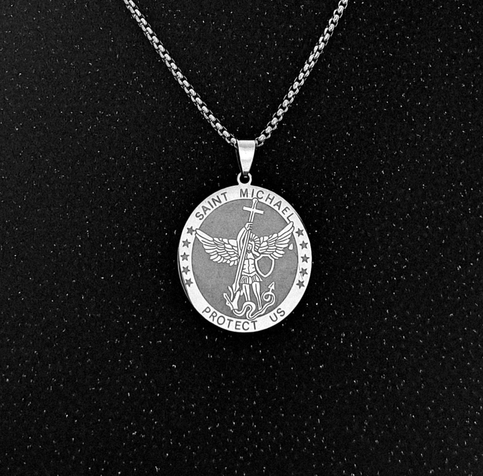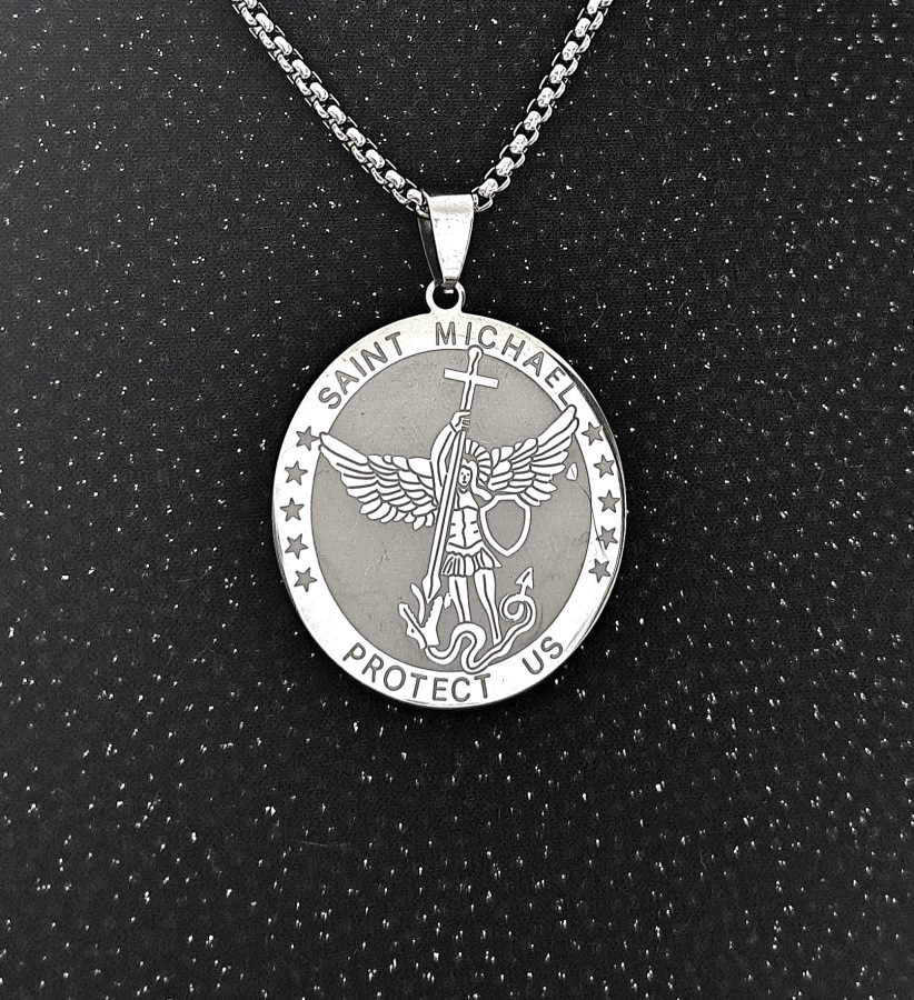 Tento elegantný amulet z kvalitnej chirurgickej ocele spája duchovnú silu s odolnosťou a čistotou materiálu. Nosením amuletu Archanjela Michaela pri sebe privolávaš jeho ochrannú energiu, ktorá ti pomáha prekonávať prekážky, čistiť myseľ od strachu a nachádzať svetlo v temnote.